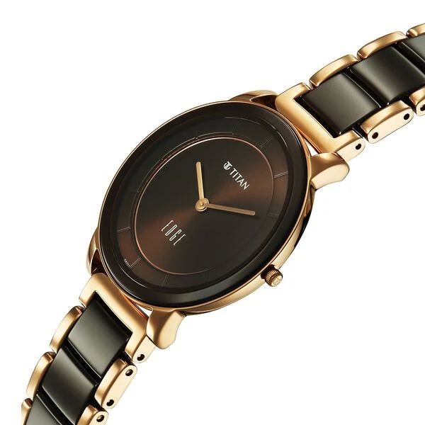 Titan Edge Melange Quartz Analog Brown Dial Rose Gold Steel & Ceramic Strap Watch For Women