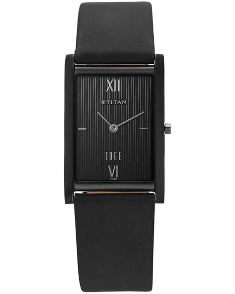 Titan Edge Quartz Analog Black Dial Leather Strap Watch for Men