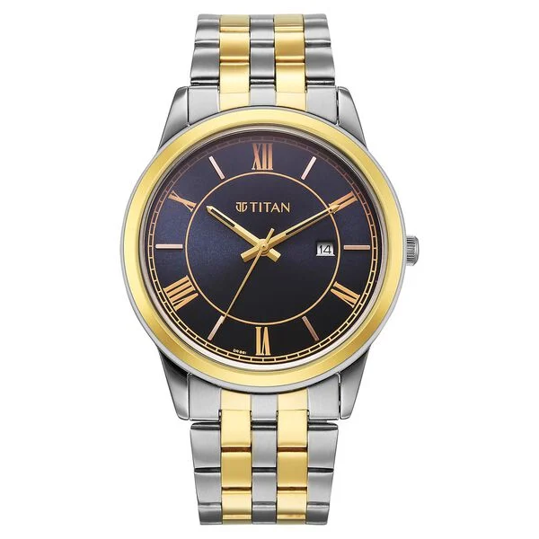 Titan Karishma Festive Analog with Royal Blue Dial Dual Tone Stainless Steel Strap Watch for Men