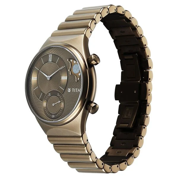 Discover the Titan Micromotors Collection – a bold reimagination of quartz watches that blends technical ingenuity with standout style. Powered by Titan�s proprietary Micromotors movement, this innovative range features three distinctive designs with groundbreaking dial constructions – including retrograde day arcs, dual-layer sun and moon indicators, and independent hour, minute, and second rings. Time is deconstructed into visually striking layouts, turning each watch into a conversation starter – not just a timekeeper. Designed for those who seek fashion with function, every piece features sapphire crystal glass, solid link stainless steel bracelets in sculptural forms, and a premium butterfly buckle for a refined finish.A perfect fusion of precision, personality, and cutting-edge design, the Titan Micromotors Collection brings a fresh, fashion-forward perspective to modern quartz watches.