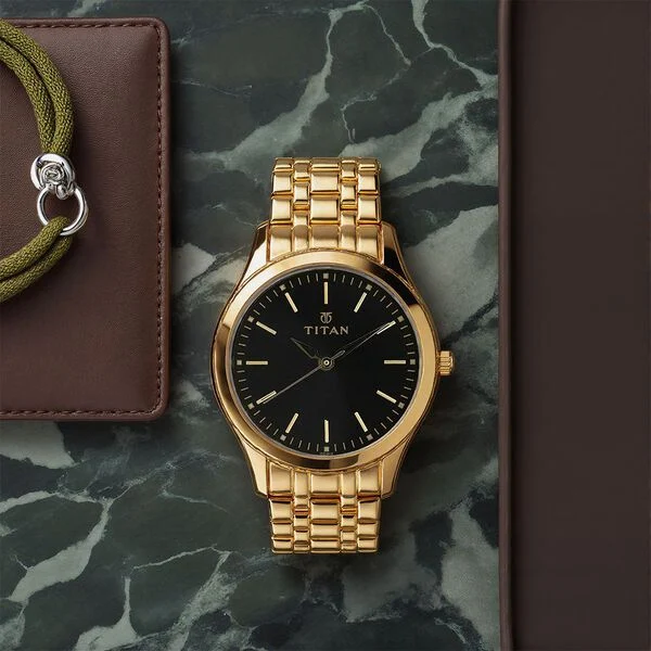 Titan Quartz Analog Black Dial Stainless Steel Strap Watch for Men