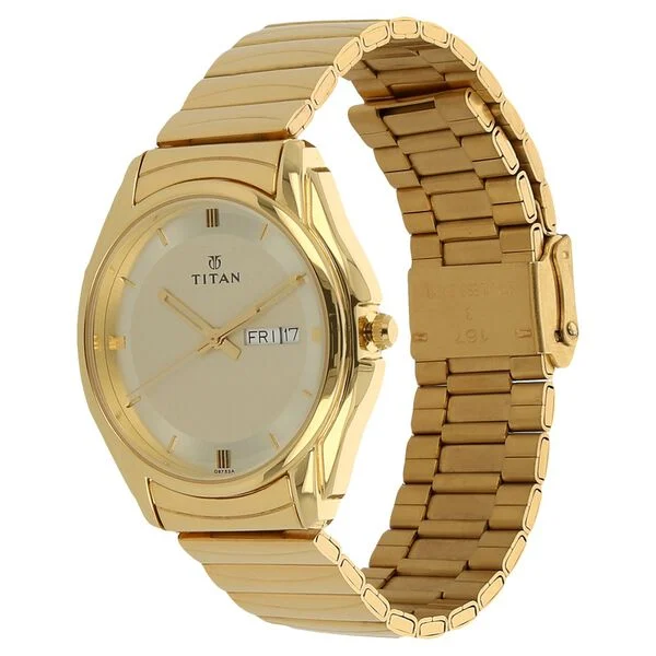 Titan Analog with Day and Date Champagne Dial Metal Strap watch for Men