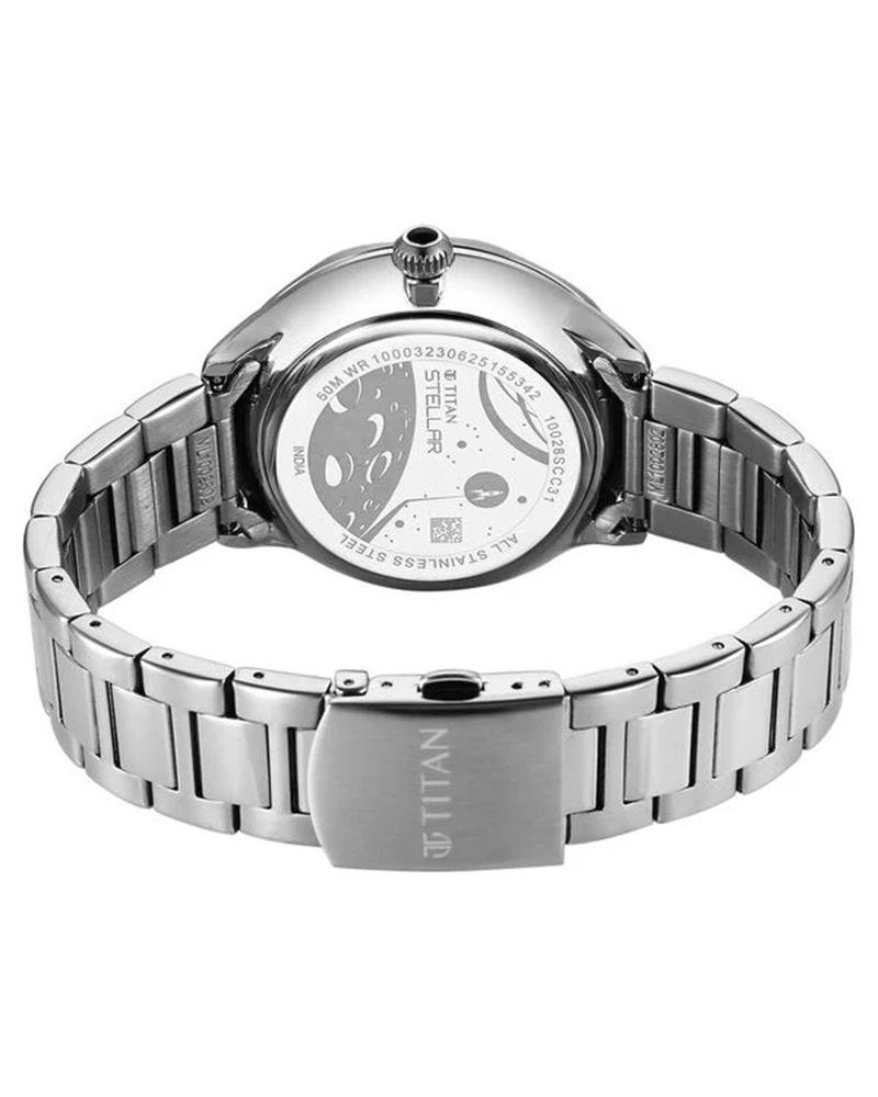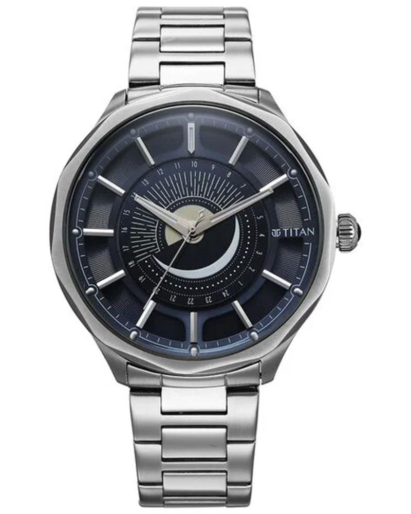 Titan Stellar Analog with Sun Moon Phase and Blue Dial Silver Stainless Steel Strap Watch for Men