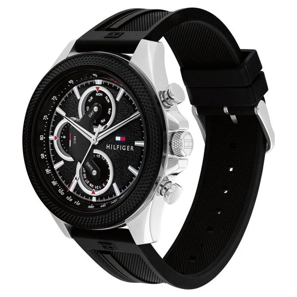 Tommy Hilfiger Quartz Multifunction Black dial Silicone Strap Watch for Men