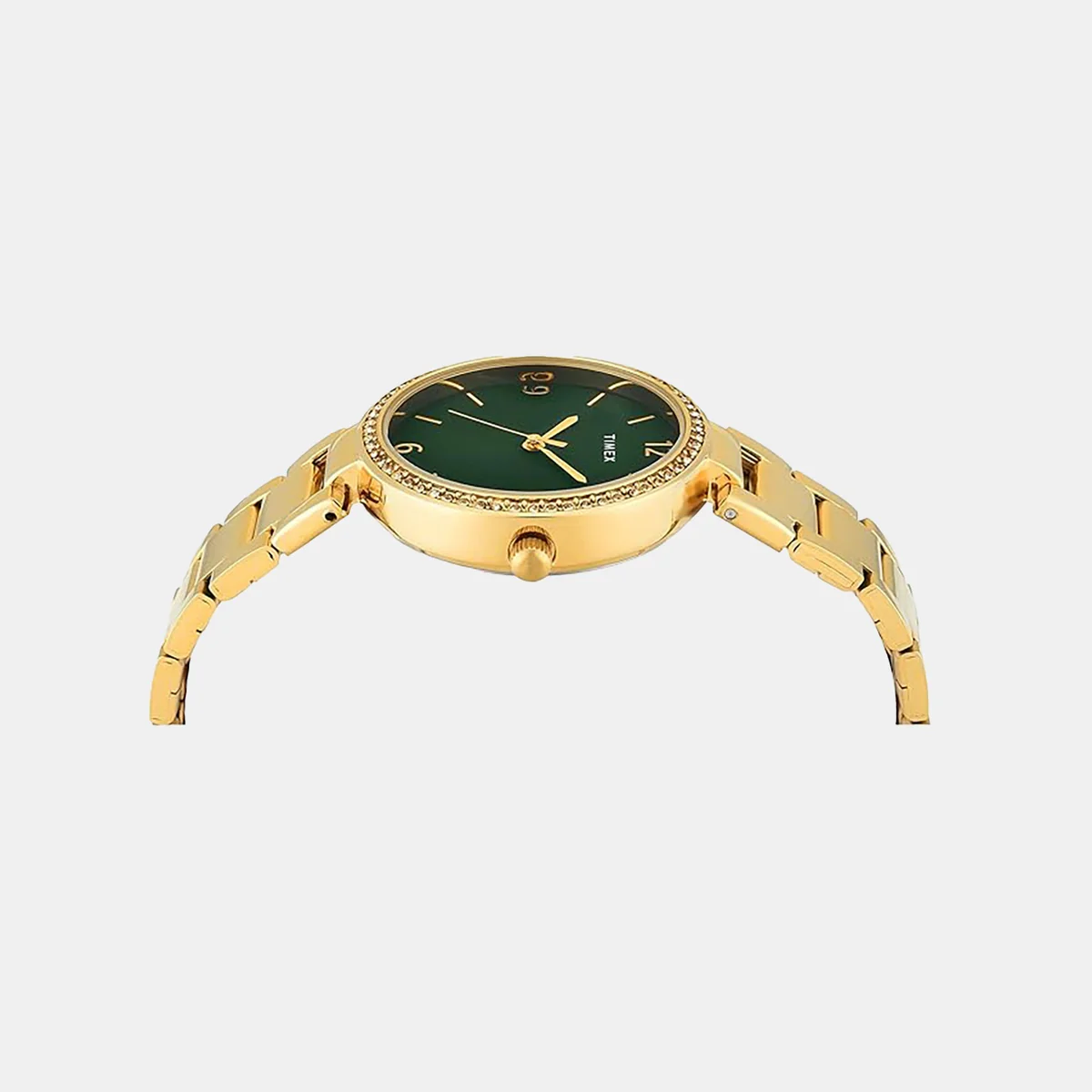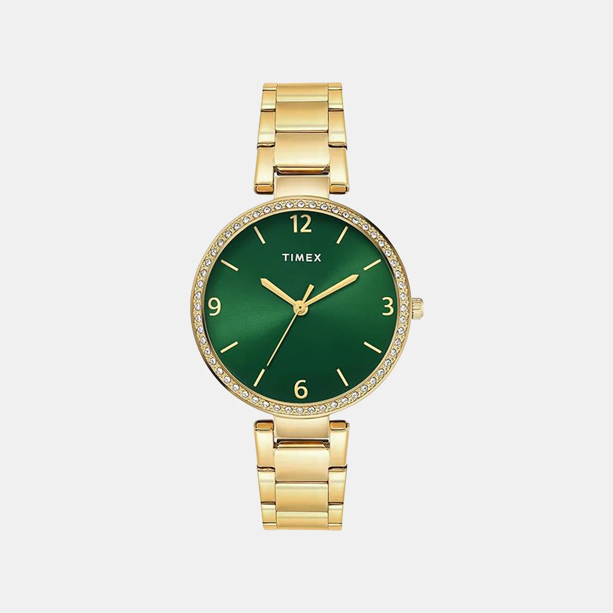 Experience timeless craftsmanship with the TIMEX Watch for Women Analog, a true classic among water resistant watches for man Analog. Designed with a bold 35mm Green dial and a stylish Gold Stainless Steel this Womens watches model combines modern edge with vintage charm. Built for everyday wear, its Brass case ensures durability, while the 30 m water resistance makes it suitable for daily splashes and unexpected weather. The Analog watch for man runs on reliable Quartz movement, offering precise timekeeping that suits both casual outings and formal occasions.