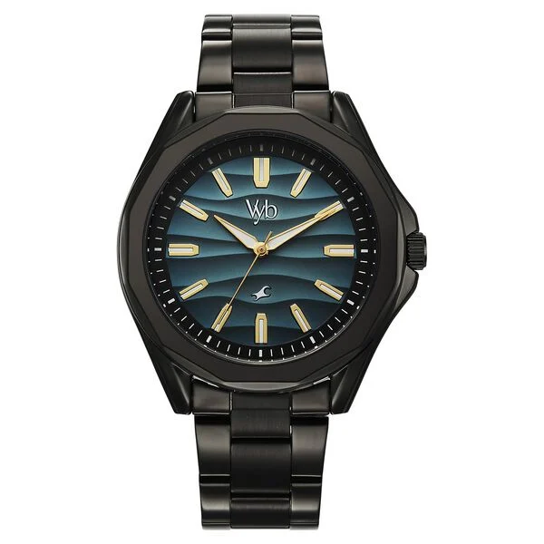 Vyb Drift By Fastrack Quartz Analog Blue Dial Black Stainless Steel Strap Watch For Guys