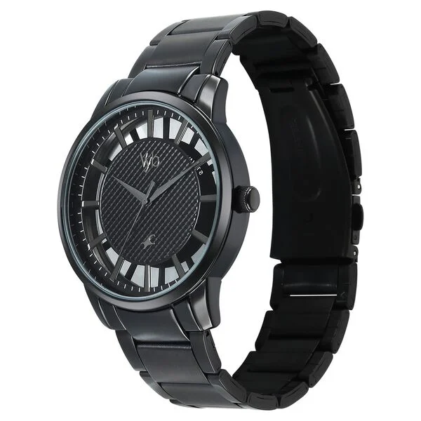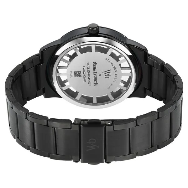 Vyb Horizon By Fastrack Quartz Analog Black Dial Grey Stainless Steel Strap Watch For Guys