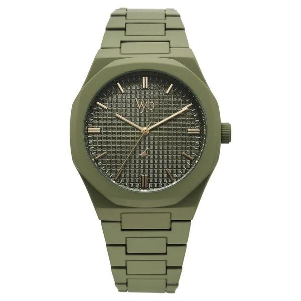 Vyb Hustler By Fastrack Quartz Analog Green Dial Metal Strap Watch For Guys