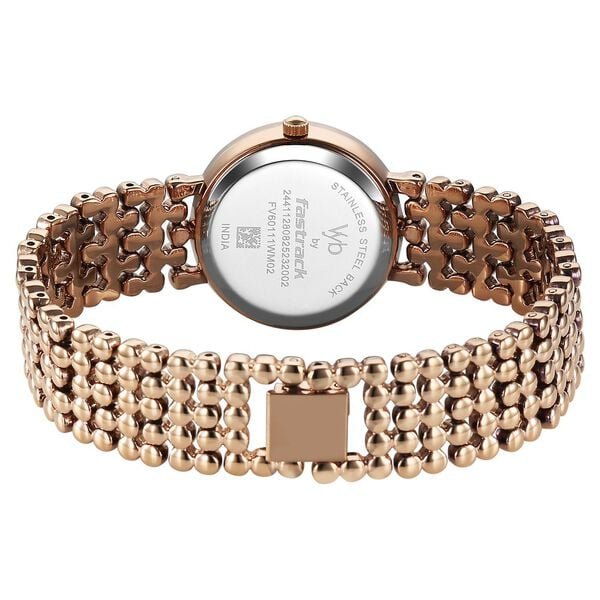Vyb Iconique By Fastrack Quartz Analog Purple Dial Rose Gold Metal Strap Watch For Girls