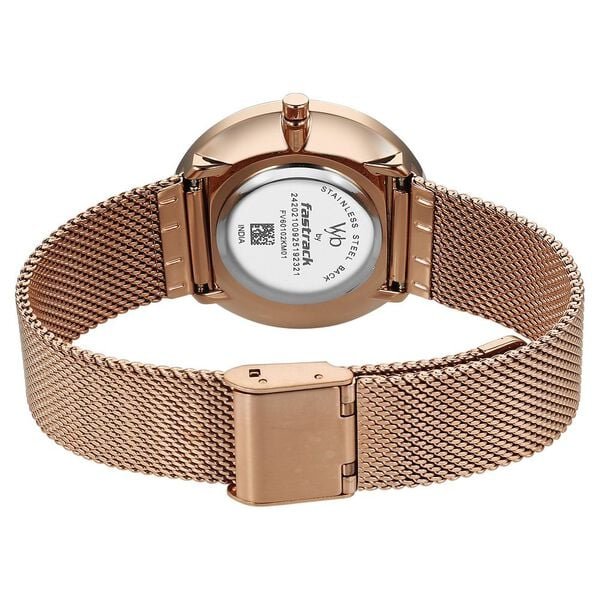 Vyb Lumina By Fastrack Quartz Analog Silver Dial Rose Gold Stainless Steel Strap Watch For Girls