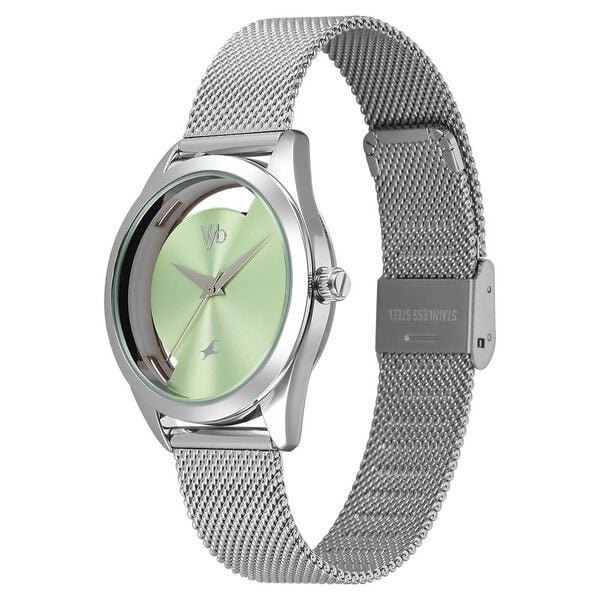 Vyb Runway By Fastrack Quartz Analog Green Dial Silver Stainless Steel Strap Watch For Girls