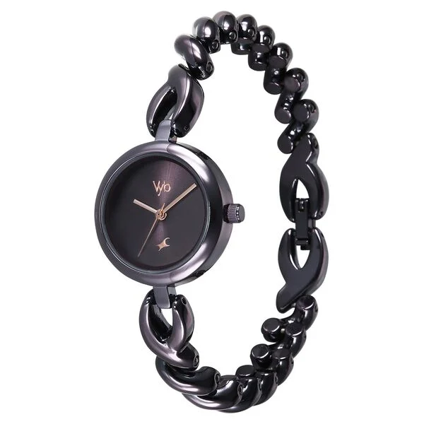 Vyb Siren by Fastrack Quartz Analog Purple Dial Purple Stainless Steel Strap Watch for Girls is a bold and stylish timepiece designed to stand out. The vibrant purple dial paired with a matching purple stainless steel strap creates a trendy and eye-catching look, perfect for adding a pop of color to everyday outfits. Its round metal case (34.5 mm length, 26 mm width, and 8.5 mm thickness) offers a sleek and comfortable fit, while the mineral glass ensures durability and clear visibility.