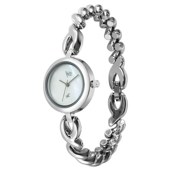 Vyb Siren By Fastrack Quartz Analog White Mother of Pearl Dial Silver Stainless Steel Strap Watch For Girls