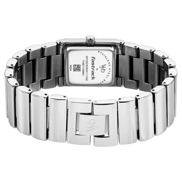Vyb Successor by Fastrack Quartz Analog Silver Dial Silver Metal Strap Watch for Girls is a sleek and stylish timepiece designed for a modern and elegant look. The shimmering silver dial perfectly matches the silver metal strap, creating a sophisticated and versatile design suitable for both everyday wear and special occasions. Its unique special-shaped metal case (29.6 mm length, 21 mm width, and 7.75 mm thickness) offers a slim and graceful wrist presence, while the mineral glass ensures durability and clear visibility.